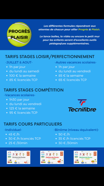 Le TCP propose aussi tout au long de l'année des TMC de toutes catégories de niveaux. Et enfin si vous voulez vous perfectionner, Mathurin et Emmanuel peuvent vous proposer des cours individuels ou collectifs sous forme de stage pendant les vacances scolaires (infos ci-dessous)